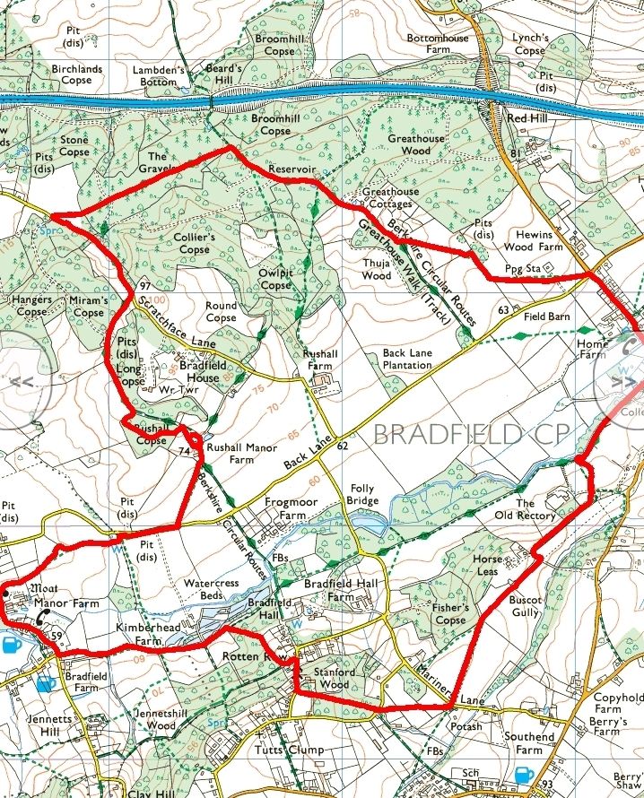 Description: A favourite walk in West Berkshire. From Rushall Farm we proceed towards the delightful village of Stanford Dingley. From there we walk along the Pang Valley up to Rotten Row. We walk through some mixed farm and forest until we reach the playing fields of Bradfield College where we will have our banana break. We cross the river Pang and then walk through Bradfield and then proceed to cross the river plain and the up the other side of the Pang Valley into forest and woodland until we return to the cars.